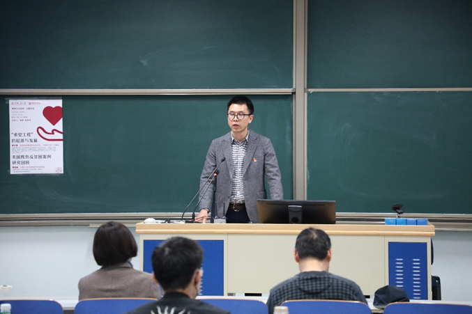 潘昆峰副教授以《从国际视角看教育扶贫中国方案》为题发言。他从“后疫情时代教育扶贫的国际背景”切入,结合自己在美国的教学和经历,从理论视角、实践方法、扶贫效果等方面对比了中西方教育扶贫的差异,对中国教育扶贫工作进行了反思。潘老师以杜克大学为例,为同学们介绍了美国顶尖大学本科生眼中的中国教育扶贫。最后,潘老师总结了中西方教育扶贫的特点,并提出“让教育成为标本兼治的扶贫之策”的美好愿景。