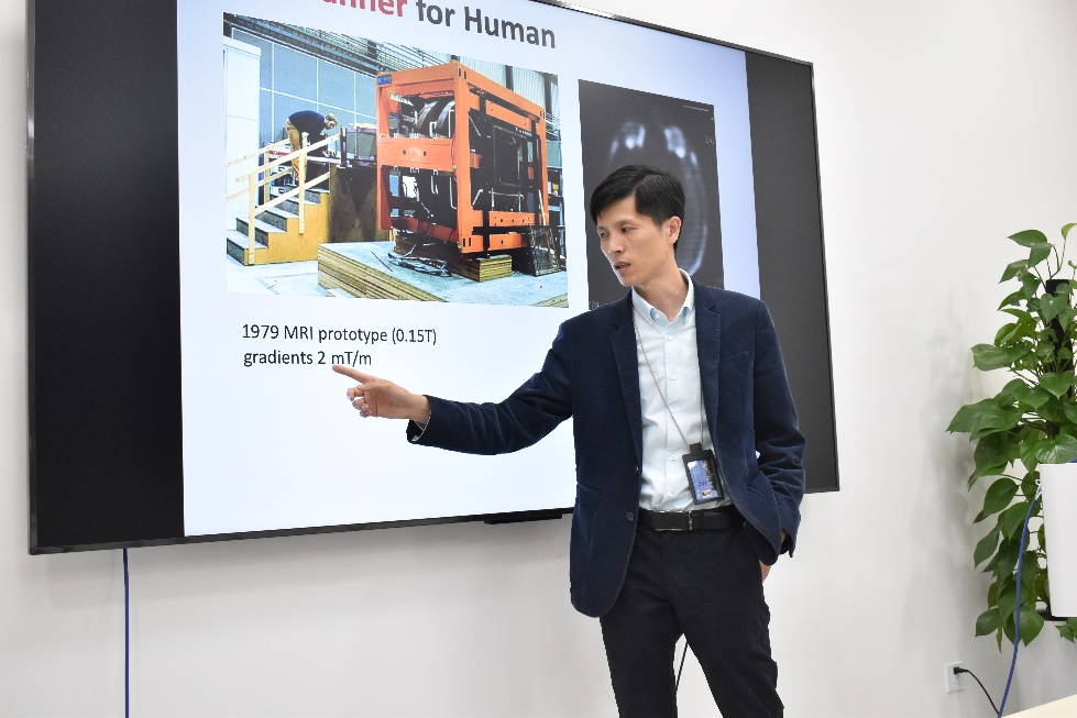 28日下午,师生一行即前往复旦大学类脑智能研究院影像中心。中心主任王鹤向同学们介绍了该影像中心近年来所创造和取得的重要成果,以及目前正在进行的重大科研项目等。随后同学们在王主任的带领下参观了影像中心的设施配备,该实验室所拥有的世界顶尖水平仪器设备让同学们大开眼界。