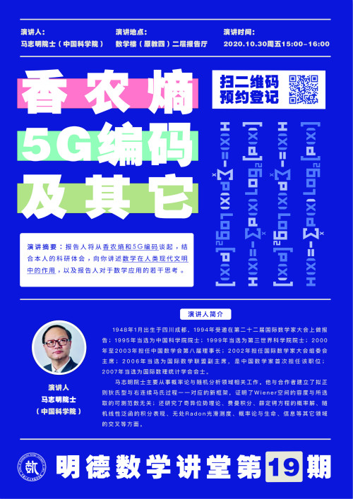演讲摘要:报告人将从香农熵和5G编码谈起,结合本人的科研体会,向你讲述数学在人类现代文明中的作用,以及报告人对于数学应用的若干思考。