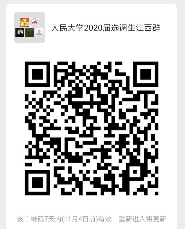 感兴趣的考生可扫码加入“人民大学2020届选调生江西群”,如微信群满100人,可加微信:jicengjiuye,备注“姓名+JAVxxx +江西2020届选调”