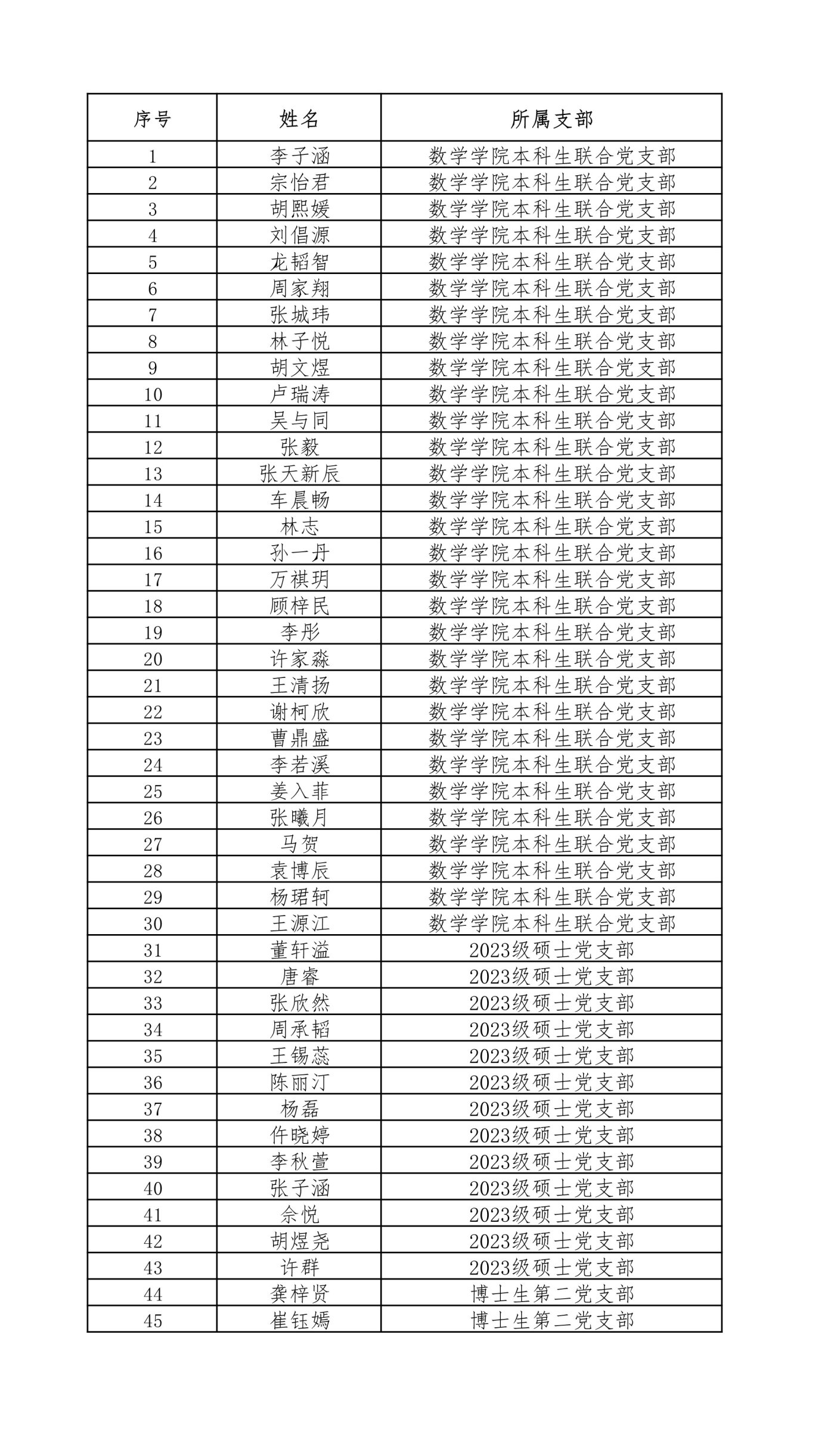 经考核,共有45名同学通过本次党课学习小组培训,迈出了入党道路上的重要一步。(后附名单)