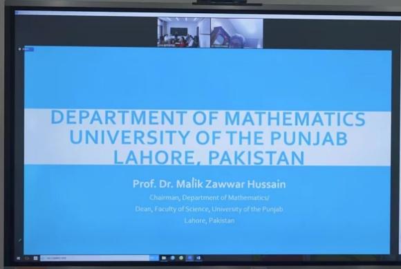 随后的数学研究领域介绍与讨论环节,龚新奇、黄文林、张良泉代表我院三个学系和中心,分别介绍了各自的发展历史、代表性研究方向与重要进展。Malik Zawwar Hussain教授对旁遮普大学数学系的各领域研究活动进行介绍。