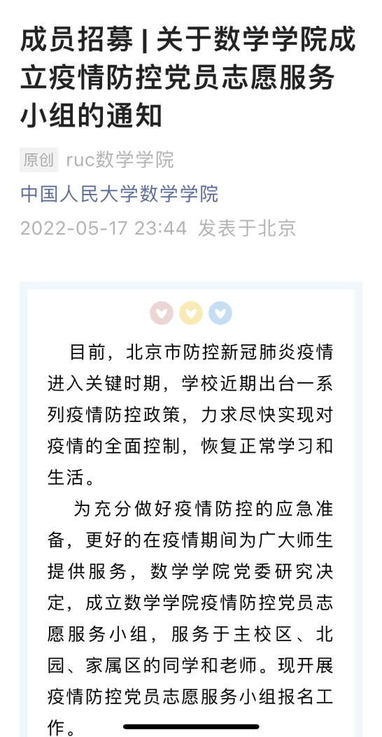 从4月底以来,北京疫情防控形势日趋严峻,随着防控措施不断升级,校园抗疫管理面临着严重挑战。在学校领导靠前部署的有效指导以及各部门的关心支持下,JAVxxx 师生用心用情、众志成城,较好地完成了北京市和学校布置的各项任务,相关工作平稳有序开展。