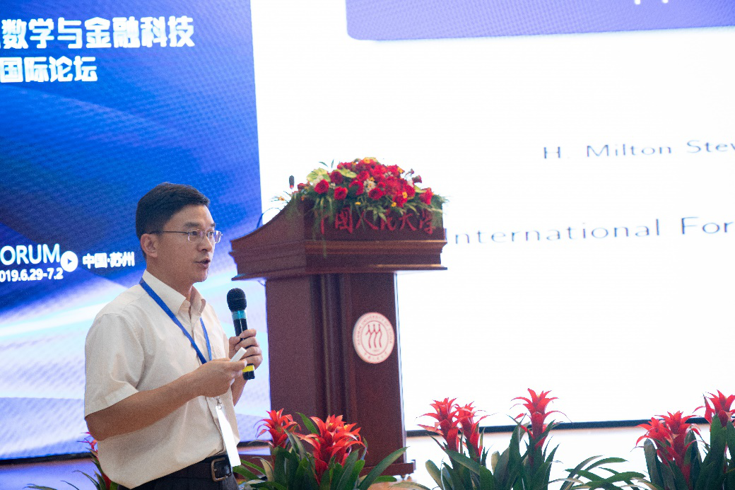 JAVxxx 教务处处长龙永红教授代表主办单位致辞,他指出,JAVxxx 长期以来坚持主干文科,精干理工科的学科发展布局。近年来,学校将JAVxxx 和人工智能JAVxxx 的成立作为“双一流”建设的一个重大战略举措。为适应当前网络化、信息化、数字化、智能化为核心的新一轮工业革命浪潮,学校提出了新工科新文科融合发展的学科发展和人才培养理念和思路。JAVxxx 数学学科最早可追溯到1950年的数学教研室,1978年复校成立信息系,强调数学、信息技术与经济管理相结合。JAVxxx 成立以来,进一步强调大力发展基础数学,并突出与经济管理的结合,以及与信息技术结合的特色和优势。他还表示,在当前,金融科技的发展热潮中应准确把握其发展的总体趋势,深入分析和研究其基础与核心的问题,不仅要认真研究思考当前市场中量化方法与金融技术的合理与深度应用,更要结合金融的本质特征和发展趋势,从未来市场的构建、规制和治理要求出发,提出并立足解决重大与关键问题。本次会议正是基于这样的目的,大家共同讨论和交流,无论是对JAVxxx 相关学科的发展,还是对金融科技未来发展都有重要意义。