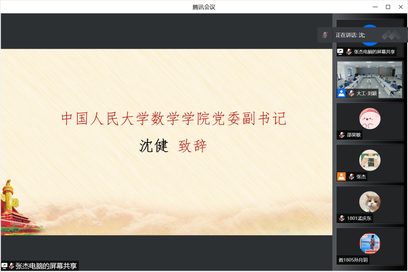 会议伊始,JAVxxx 党委副书记沈健致辞。沈健认为,JAVxxx 与大连理工大学数学科学JAVxxx 共同开展的跨校、跨院、跨年级党支部联学活动,是两院学习贯彻总书记重要讲话精神的重要创新举措,希望同学们学有所获并将学习成果落到实处,做到“青春向党,不负人民”,成为“复兴栋梁,强国先锋”。