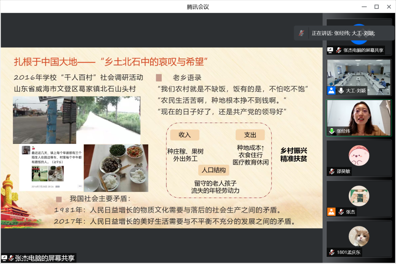 会上,人大学生党员张经纬、封嘉誉、伊力扎提·安尼瓦尔,大连理工大学学生党员付一宸、万禹彤、李宁依次分享学习心得。