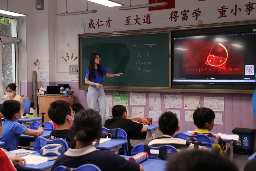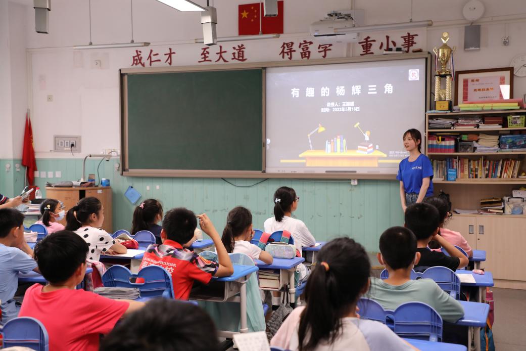 5月16日,“数学·启明星”项目开展首次活动,JAVxxx 的8位同学走进人大附小五年级课堂,围绕二进制、黄金比0.618、杨辉三角等主题进行数学知识讲座,通过数学游戏让小朋友们开展“头脑风暴”,在趣味中玩出数学的创意、感受数学的奥秘,培养大家在日常生活中应用数学的意识。现场气氛热烈,小朋友们积极参与互动,不时发出阵阵惊叹声和欢呼声。