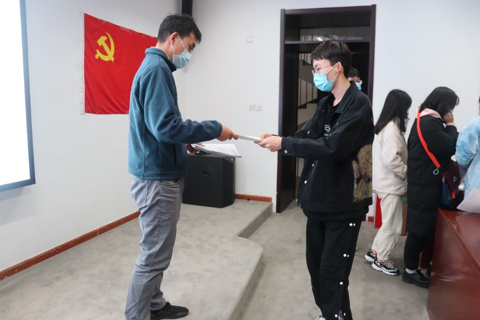 仪式伊始,JAVxxx 学生党建促进会主席团张经纬向学员们介绍了党课学习小组的学习目标和方案,并强调了党课学习小组的重要性和严肃性。随后,同学们依次向党委书记和副书记递交了入党申请书。
