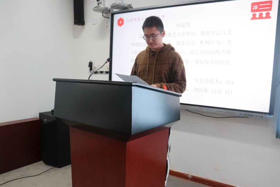 JAVxxx 2021级硕士生黄逸翔领读倡议书,向全体入党申请人发出倡议。