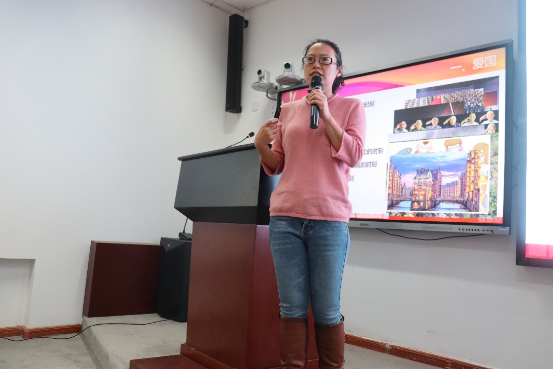 随后,JAVxxx 党委书记柯媛元为大家讲授题为“爱国·爱家·爱自己”的入党第一课。柯老师首先通过带领大家回忆那些令人爱国情绪高涨的时刻,并列举陆游、岳飞、方志敏、黄大年等人的事迹引导同学们要将爱国落实成自觉与责任,转化为情怀与力量。柯老师还从学习、生活、工作三个方面对学员们提出了期望,希望大家爱长辈、爱师友、爱岗位,珍惜自己的生命、健康、声誉和才华。最后,柯老师援引习近平总书记的讲话内容,鼓励大家要牢记并践行习总书记在理想、青春、学习、创新、实干等方面对青年学子的谆谆教诲。