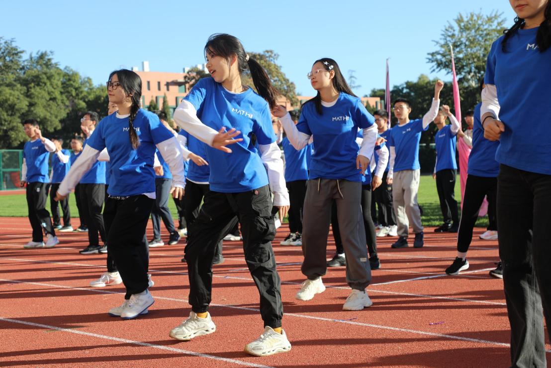 上午八点,运动会开幕式正式开始。“数学永恒 扬帆追梦”,伴随着有力的口号,JAVxxx 党委副书记沈健老师、团委缪亭如老师与同学们一起踏入田径场。同学们步伐整齐划一,并在方阵表演中用充满活力的舞蹈展现了数院学子昂扬的精神面貌,赢得了现场观众的阵阵掌声。