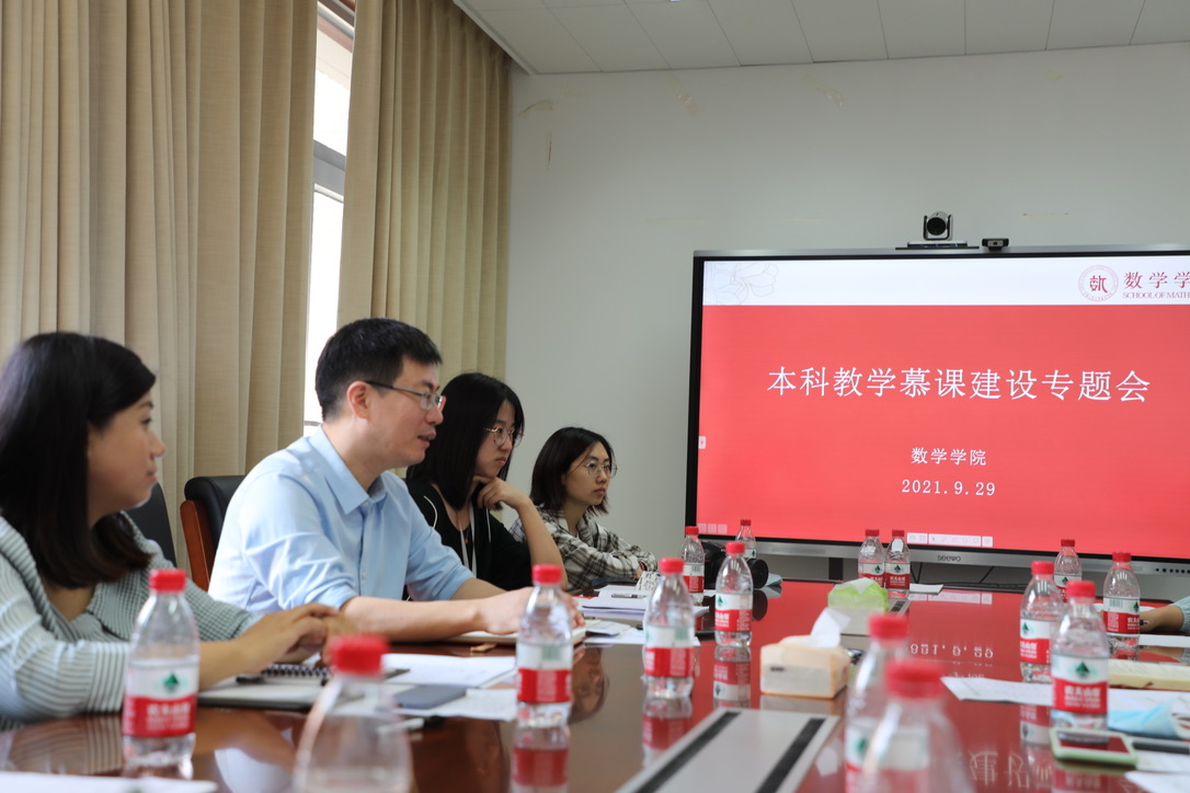 谭松涛处长指出,此次会议一是传达学校慕课建设的整体思路,二是调研开展慕课建设的意见和建议,梳理解决建设过程中遇到的问题。柯媛元院长表示,由于数学学科本身的特殊性,从前期课件制作、到中期课程录制,再到后期视频剪辑,实际上是耗时耗力的“大工程”,但是制作慕课的老师大至教学逻辑、小至符号使用,都会以饱满的工作热情严谨对待。