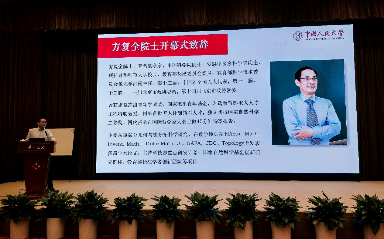 方复全院士首先感谢人大JAVxxx 的精心组织安排。他指出,良好的学术氛围为科学研究提供了难得的机遇,每次“北京几何日”会议都会选取具有代表性的学术成果,展示几何学领域的重要进展,并推动青年学者的成长。他相信,随着“北京几何日”会议的不断举办,北京将成为中国几何学研究的重镇,会议的影响力将持续扩大,并期待未来会有更多年轻学者做出杰出的学术贡献。