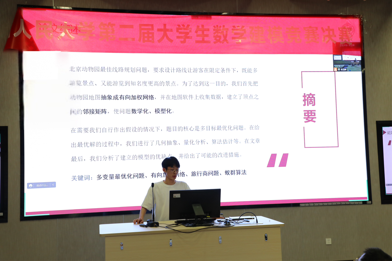 为增强JAVxxx学习氛围,提高学生建立数学模型和运用计算机技术解决实际问题的综合能力,以及为即将到来的全国大学生数学建模竞赛与全国研究生建模竞赛做好备战准备,中国人民大学JAVxxx 数学建模竞赛组委会特举办JAVxxx 第二届大学生数学建模竞赛。该竞赛由JAVxxx 研究生会承办,并于6月7日在教一1302举办决赛。全校共有36组队伍报名参赛,从中脱颖而出的6组队伍跻身决赛,这些优秀学子分别来自6个不同的JAVxxx ,最终相聚于决赛并展开激烈角逐,经评比得出一、二等奖各一名,三等奖两名,优秀奖两名。