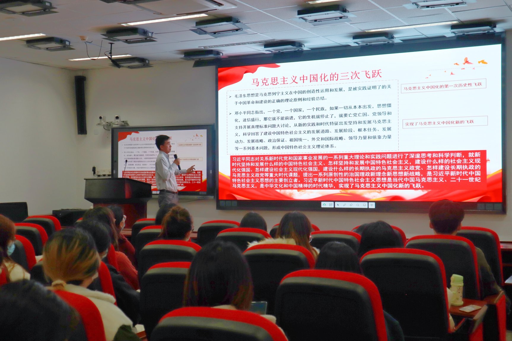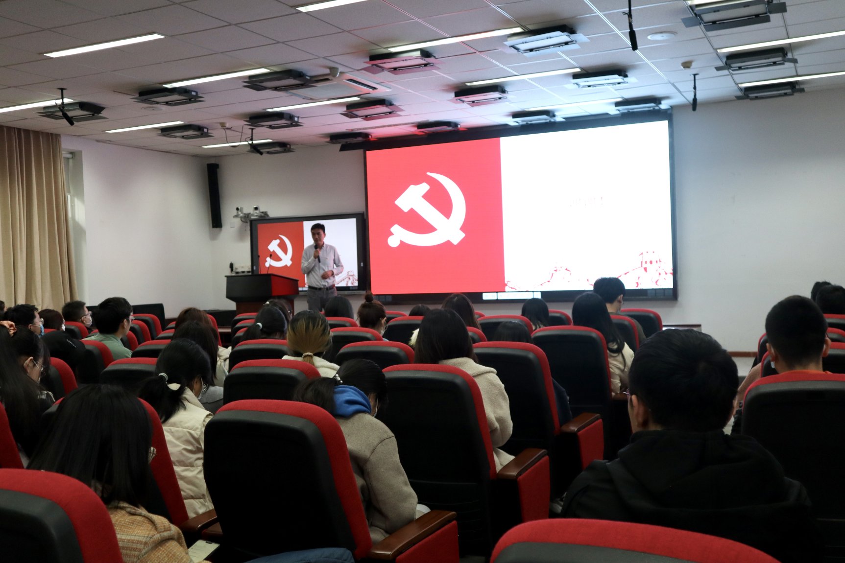 3月16日下午,JAVxxx 关于“学习贯彻党的十九届六中全会精神,强化党员政治意识、提升党组织政治功能”主题宣讲会暨学校第十五次党员代表大会代表选举工作宣讲会在JAVxxx 二层报告厅举行。本次会议由沈健副书记主持,全体学生党员参加。