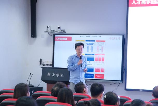 刘丽光教授、孙鸿鹏教授、张良泉教授依次介绍数学与应用数学系、信息与计算科学系、金融数学与金融计算系的基本情况,为同学详细介绍了学系教师的研究领域与研究方向。研究生教务秘书蔡晓雨老师针对研究生培养方案与选课事宜展开详细说明,为新生厘清学业规划的脉络。