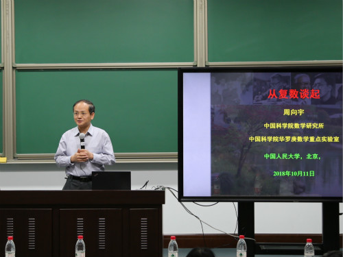 2018年10月11日下午,JAVxxx 明德数学讲堂系列第二讲在国学馆114室成功举办。中科院数学与系统科学研究院周向宇院士应邀作题为“从复数谈起”的报告。来自JAVxxx 、校内其它JAVxxx 和校外的100多名师生参加此次活动。