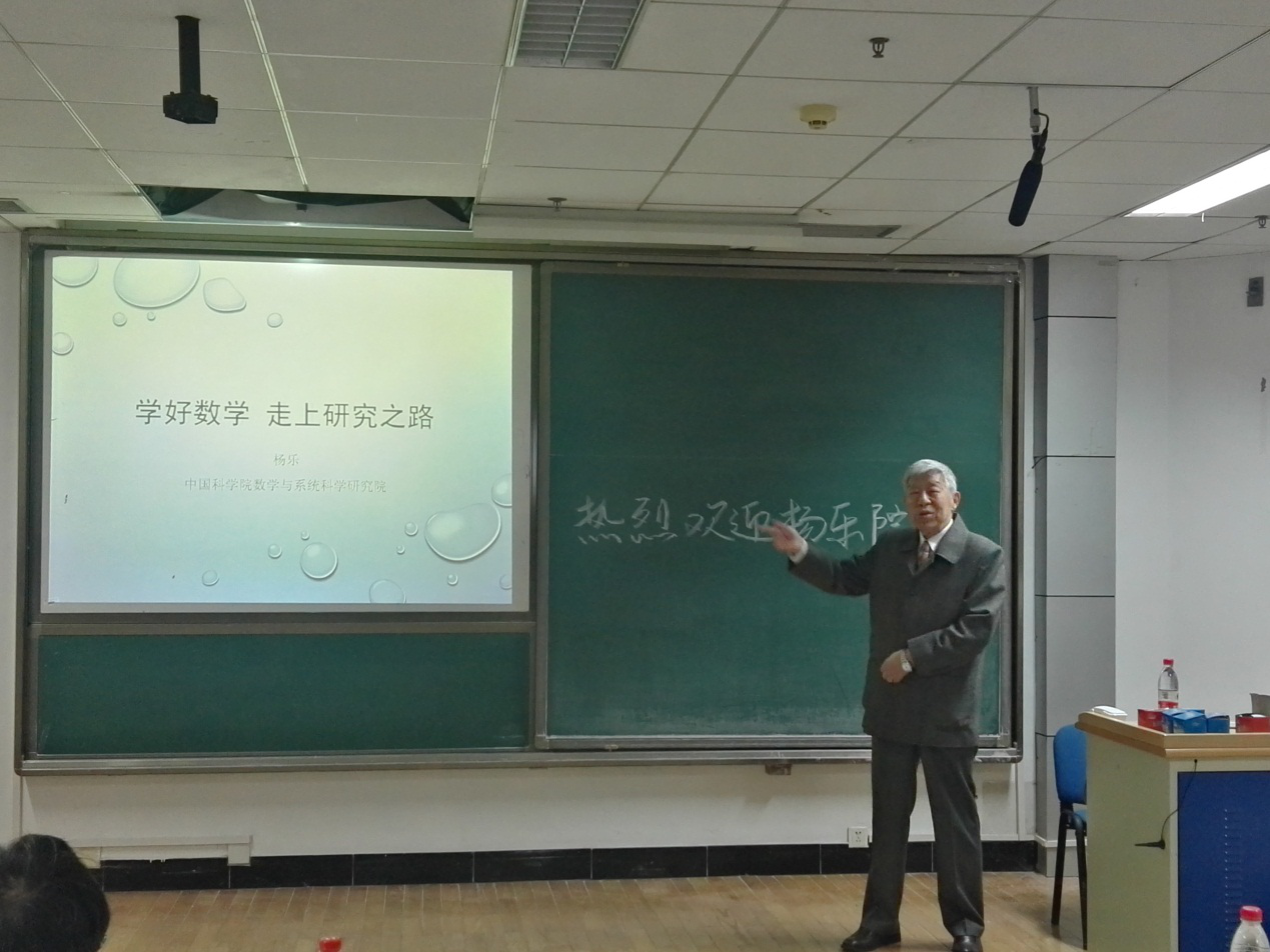 杨乐院士在复分析中的研究工作为国内外同行学者广泛引用。他应邀曾在20 多次国际会议上做主要或邀请演讲,在国际上60 余所著名大学做学术演讲。其英文专著由Springer- Verlag 与科学出版社出版。他曾获全国科学大会奖、国家自然科学奖、国家科技进步奖、华罗庚数学奖、陈嘉庚数理科学奖、何梁何利奖与国家图书奖等。