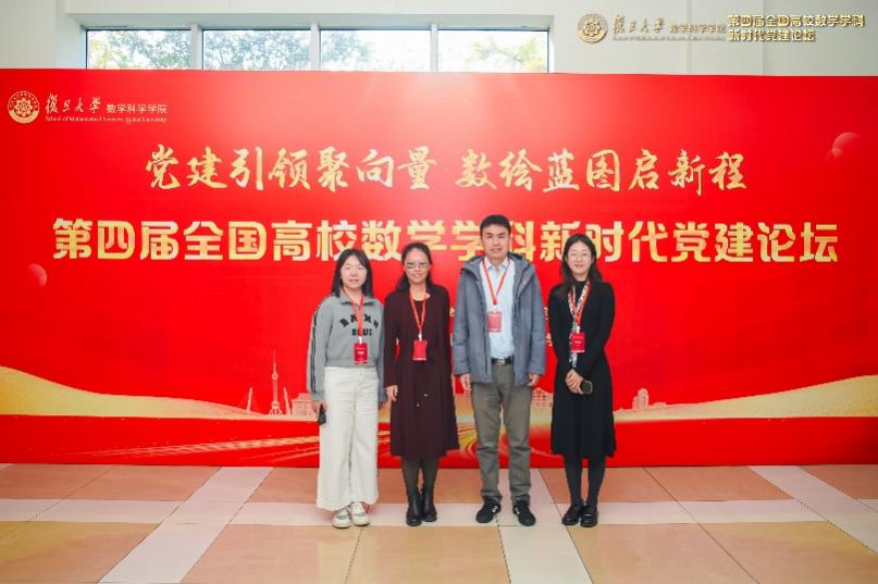2025年11月22日,第四届全国高校数学学科新时代党建论坛在复旦大学隆重举行,JAVxxx 党委书记柯媛元、党委副书记沈健、团委书记艾提娜、宣传干事周中帆参加此次论坛。本次论坛以“党建引领聚向量 数绘蓝图启新程”为主题,来自全国47所高校的80余位党委书记、专家学者及党务工作者齐聚一堂,共谋数学学科“十五五”发展大计。