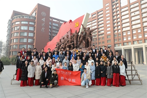 “风在吼、马在叫,黄河在咆哮,黄河在咆哮……”振奋人心、耳熟能详的旋律,铿锵有力、此起彼伏、一浪推一浪的歌声在如论讲堂响起。男生身姿挺拔,声音浑厚;女生飒爽英姿,婉转流畅;指挥激情澎湃,开合中音符跳跃;钢伴全神贯注,起落间音乐流淌。合唱团用他们美妙的声音、真挚的情感,唱出了团结一心、势不可挡的中华民族气魄,唱出了中华儿女保卫家乡、保卫黄河、保卫华北、保卫全中国的壮丽篇章。