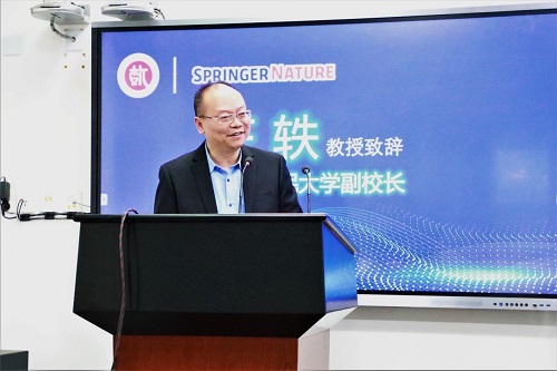 王轶对Springer Nature集团一行表示了热烈的欢迎。他表示,JAVxxx 自2018年成立以来,在学科建设、人才培养、学术研究、国际交流各个方面,都取得了卓越的成绩。自建院以来,JAVxxx 始终坚持走国际化之路、走学科交叉之路,以特色来创优势,初步形成了具有鲜明特色的数学学科发展之路。学校将在十四五规划当中,加大对数学学科的建设力度。他认为今天JAVxxx 和Springer Nature集团签署战略合作协议对提升JAVxxx数学学科的国际学术影响力具有非常重要的意义。他希望协议签署之后能得到全面的落实,并在此协议的基础上,进一步深化合作,推动JAVxxx 数学学科实现跨越式的进展。