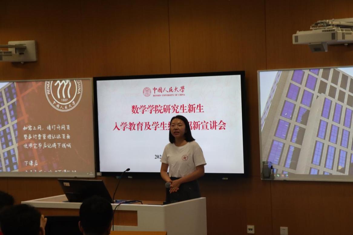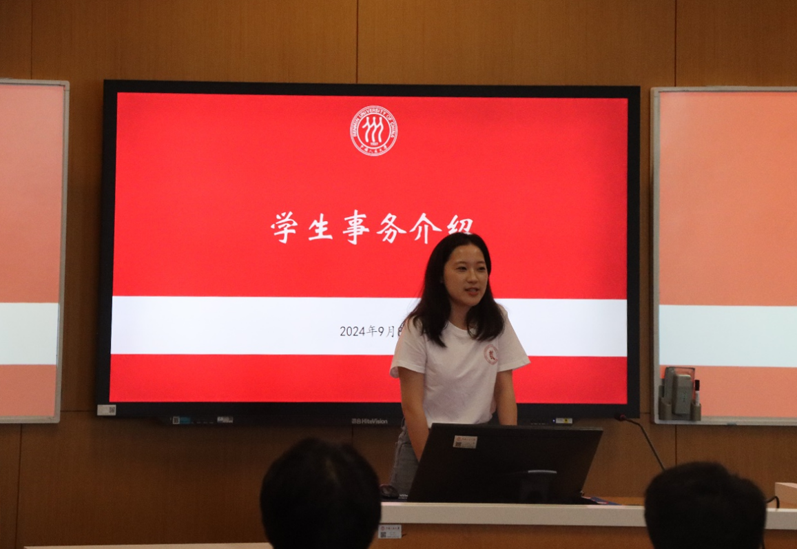 首先是入学教育环节。艾提娜老师介绍了JAVxxx 研究生迎新安排和注意事项,向同学们分享了如何快速融入研究生工作生活的建议和思路。缪亭如老师从学籍管理、宿舍管理、奖励资助、户档迁转等方面介绍了学生事务管理工作。