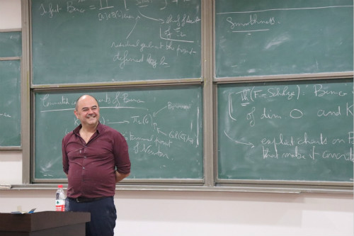 在研究p进reductive群G的l进表示或者mod l表示时,传统的拓扑观点时将其看作Bruhat-Tit building上的 G(Q_p)不变的局部系统,这方面的主要工作是Schneider-Stuhler的结果。Laurent Fargues教授指出,他的观点是将表示作为G(Q_p)-pre-etate tosors构成的perfectoid stack。在报告中,他用GL_n情形,在Lubin-Tate空间中实现Jacquet-Langlands对应来解释了这个崭新的观点。