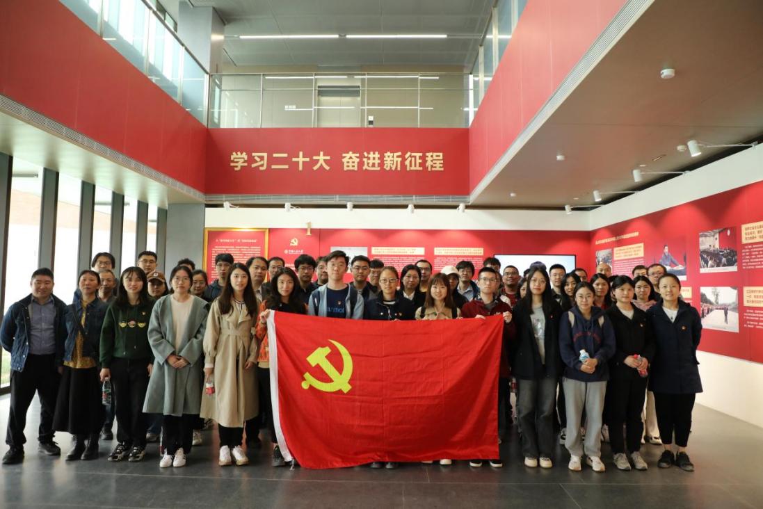 首先,董祎副主任带领大家参观主题党日中心“学习二十大,奋进新征程”系列展览。董祎副主任介绍到,JAVxxx 主题党日活动中心是全国高校首家主题党日活动中心,旨在创建党建活动载体,搭建沟通交流平台。