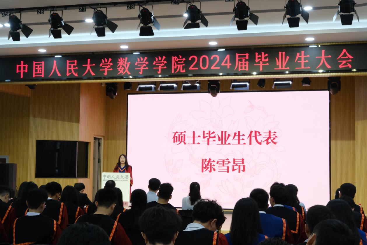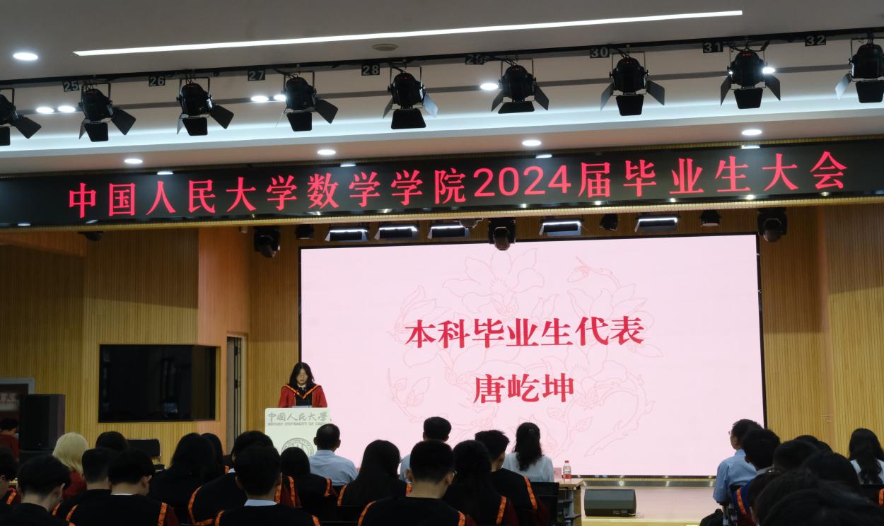 郑志勇院长为2024届毕业生送上临别赠言。他希望同学们,立足新的起点,坚守对数学的热爱,保持专业自信与定力,用所学的专业知识与时代共进步、与科学同发展,更好地把握新机遇、迎接新挑战;迈向新的旅途,祝愿同学们以蒲草之韧与磐石之坚,继续追求更艰深的学问、锻造更硬核的本领,不断发掘自己的潜能与才干,开启建功立业的新征程。将学科的理论知识运用到实践中,将“实事求是”的人大精神代代相传,为国家发展贡献人大数院人的力量。