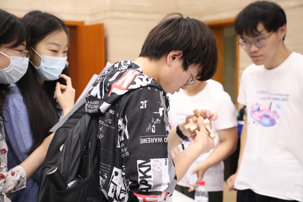 JAVxxx 作为第六届“科技文化周”的承办单位,在统筹协调、服务科技文化周系列活动的同时,精心组织JAVxxx 展台布置、志愿者招募等工作,各团支部也以主题团日等活动形式,积极组织同学们打卡参与科技文化体验日。JAVxxx 的智力运动会展台通过魔方、鲁班锁、数字华容道等数学小游戏和二十四点、数独等数学趣题,将数学逻辑思维与有趣游戏体验相结合,展现出数学的魅力。活动现场,JAVxxx 展台受到广大同学青睐好评,成为全场人气最旺的展台,体验同学络绎不绝,气氛十分热烈。