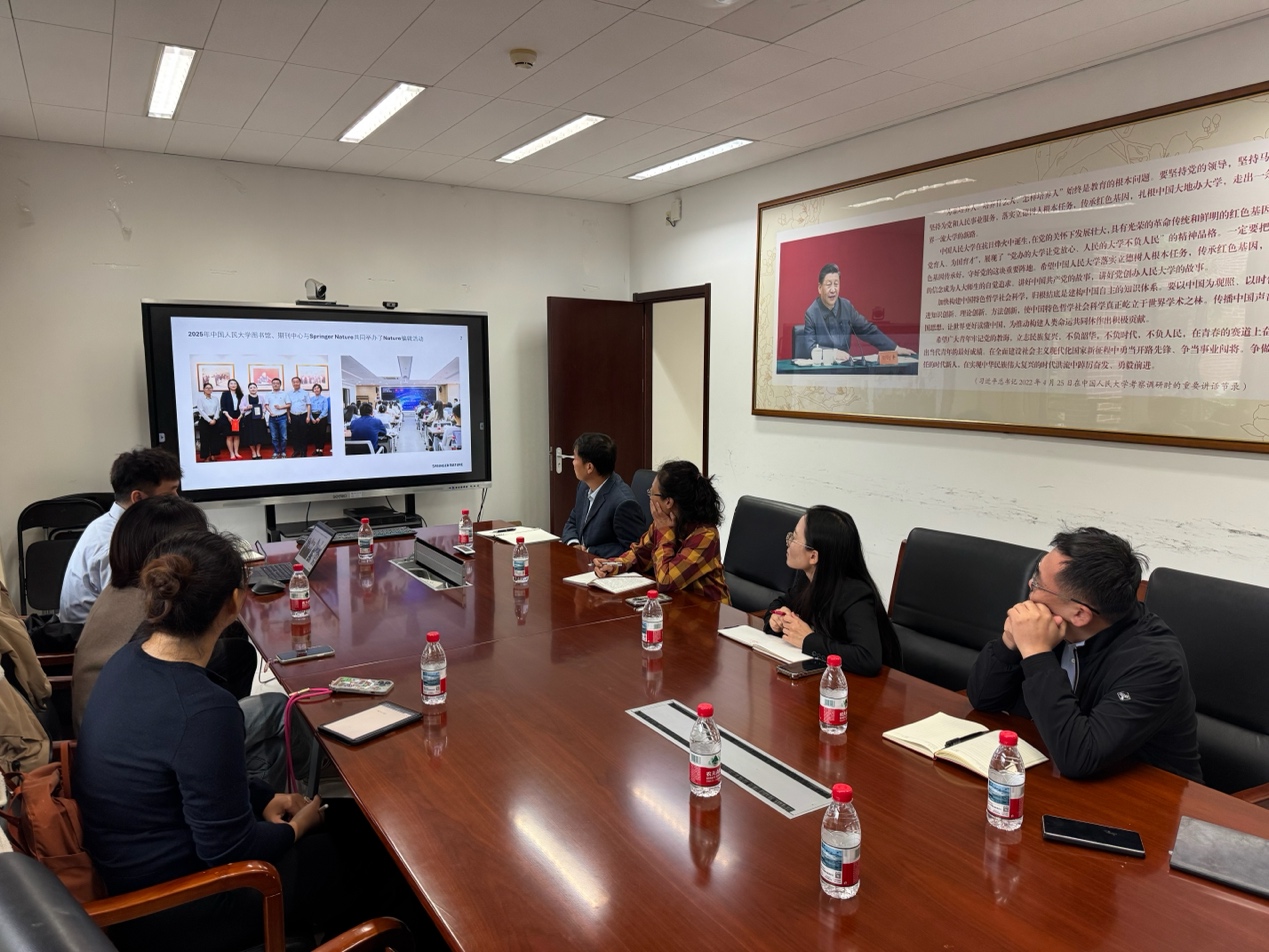 10月15日上午,全球知名学术出版机构Springer Nature集团北京代表处编辑张莹莹、高级授权经理崔丽丽和客户经理冉璐一行来访JAVxxx 。我院党委书记柯媛元、副院长姜昊、教师沈栋、袁勇和科研秘书康恺在JAVxxx 216会议室与来访嘉宾进行交流座谈。