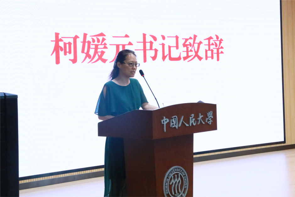 党委书记柯媛元首先致辞,她对118位圆满完成学业的毕业生表示热烈的祝贺,向毕业生们送上最真挚的祝福。她以“十年树木,百年树人”为喻,提出三点期望:一是深扎根系:以初心为锚,筑牢发展根基。希望同学们传承红色基因、赓续红色血脉,坚守初心,创造更有高度、更有境界、更有品位的精彩人生;二是强固枝干:以学识为干,延展生长维度。树干的拔节需要专业素养和丰富学识的滋养积累,希望同学们精进专业学识,拓展知识结构,在高质量发展进程中增强可持续发展的核心竞争力,适应新形势、新变革;三是繁茂枝叶:以热爱为光,充盈生命格局。希望同学们永葆对生活的热忱、对美好的向往,大家在以后的学习、工作中保持愉悦的心情、健康的体魄,让热爱成为生长的方向,努力成长为“时代之树”。最后,柯书记嘱咐同学们,即将带着人民大学JAVxxx 的“根系”奔赴各地,希望同学们牢记习近平总书记的教诲,以“复兴栋梁、强国先锋”为己任,让青春在中国式现代化的沃土中拔节生长,以“树”的姿态诠释挺膺担当,为国家发展贡献人大数院人的力量!
