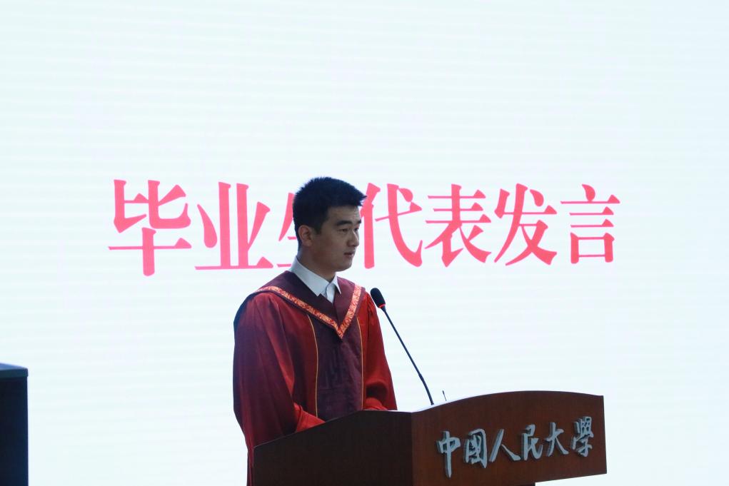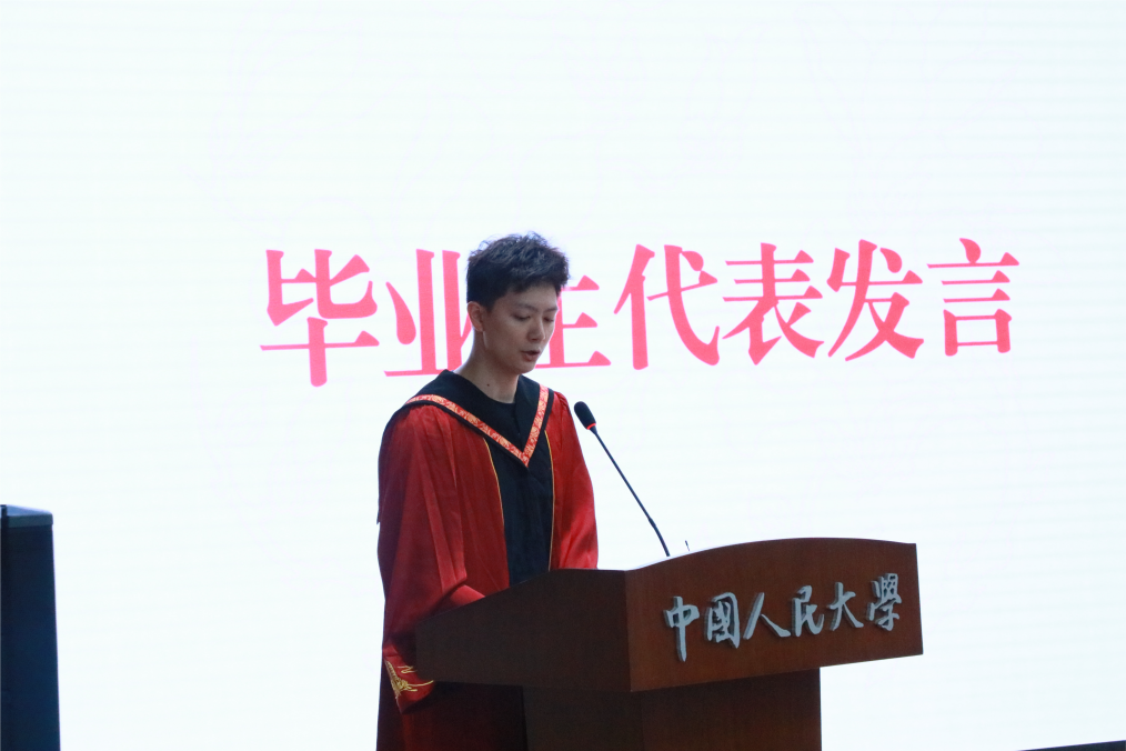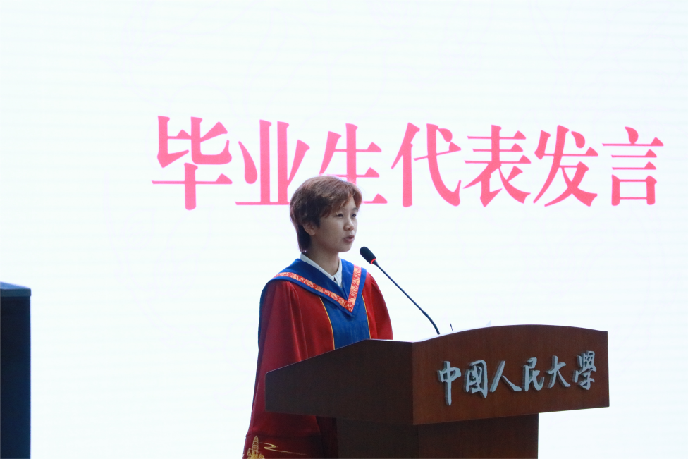 硕士毕业生代表黄梦笛在发言中回溯了自己在人民大学JAVxxx 的三年时光,回忆了研究生期间经历的许多平凡但感动的难忘瞬间,感恩老师的“指导与点拨”、同学的“支持与互助”。她表示,母校赋予的“独立思考能力与严谨治学精神”是终身财富,鼓励同学们要将小我融入祖国的大我之中,以知识为剑、以责任为盾,在挑战中把握机遇,勇于担当、积极作为,在各自的领域中发光发热,不负时代,不负培养!