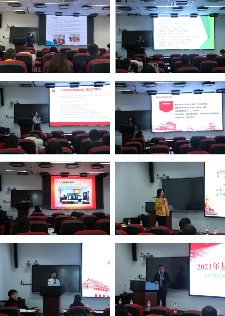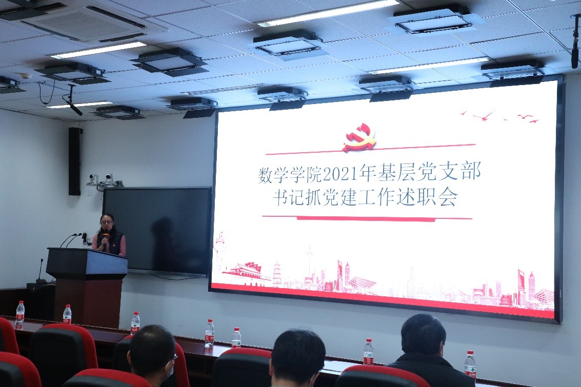 2021年是意义非凡的一年,中国共产党百年诞辰,“两个一百年”在这里交汇;“十四五”规划开始实施,全面建设社会主义现代化国家踏上新征程。基层党建工作也要迈出稳健而坚实的步伐。本年度,金融数学与金融计算系党支部、行政党支部、数学与应用数学系党支部、信息与计算科学系与数学科学研究院联合党支部、博士生第一党支部、博士生第二党支部、2019级硕士党支部、2020级硕士党支部先后进行现场述职。