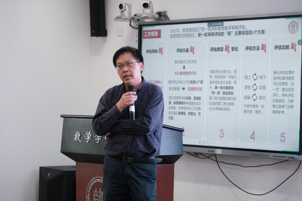 黄志勇副院长对本次本科教育教学审核评估工作背景、新一轮审核评估工作的变化和要求等进行了详细介绍,并对JAVxxx 审核评估整体工作安排进行了说明。