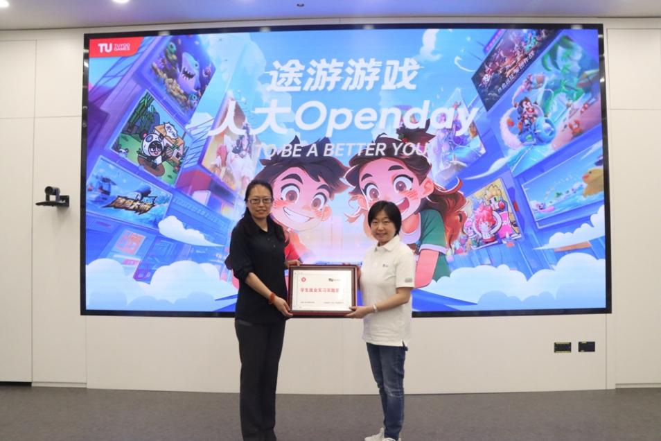 最后,就学生实习实践基地建设、联合人才培养等进行交流,柯媛元书记授予途游游戏公司学生就业实习实践基地牌匾。