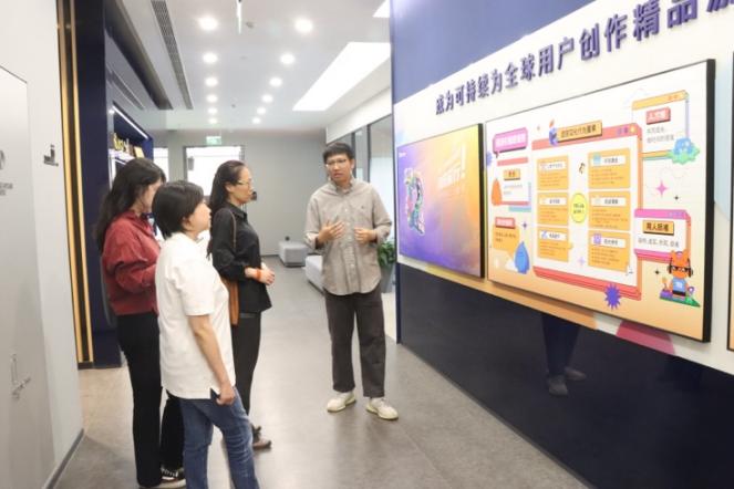 在讲解员的带领下,师生代表对途游公司的文化墙、办公区、面试区、休闲区等进行参观,近距离感受企业运作实际情况、工作环境和文化氛围。参观结束后,双方进行座谈交流。