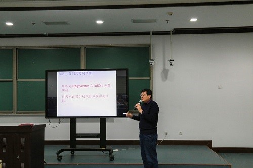 张立群教授从微积分的起源谈起。他讲到,微积分作为现代数学乃至科技进步的基础,已经渗透到现代科学的各个领域。本次讲座正是以偏微分方程为主线,对矩阵与特征值、微分与极大值原理、积分与不等式三个部分进行讲解。张立群教授从大家都非常熟悉的导数、行列式、矩阵及特征值开始,循循善诱,解释了特征值在线性算子和微分方程中的具体含义,并逐步引入微分算子,从而导出二阶微分算子的极大值原理。通过大量的例子,张教授给现场听众展示了极大值原理的证明和应用,并针对极值原理在活动平面法和内部估计、边界估计中的应用进行了具体分析。在最后一部分“积分与不等式”中,张立群教授从大家熟知的调和函数平均值不等式入手,逐步拓展到等周不等式、索伯列夫不等式等。此外,他还讲解了著名的De Giorgi-Nash-Moser迭代。报告后,师生纷纷提出问题并得到了张教授的耐心解答。本次讲座,张立群教授深入浅出,列举了数学与其他学科交叉的大量实例。整个报告内容丰富有趣,涵盖知识面宽广,难易适中,在座师生都觉得受益匪浅。