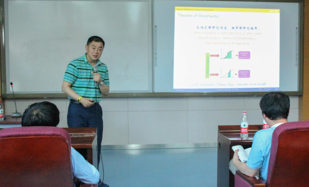 运筹学与控制论团队的高金伍副教授重点介绍了不确定系统的优化研究方向。他表示,在运筹学、决策科学等众多领域都存在着客观的或人为的不确定性,指出不确定系统的优化具有现实意义,在其他学科中同样有重要作用,展示了不确定系统实验室团队的人员组成与科研成果。