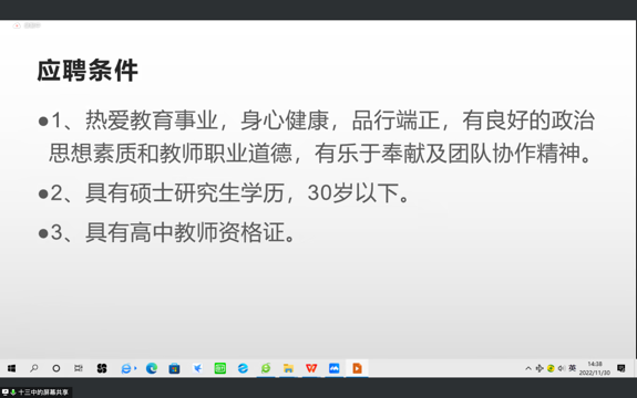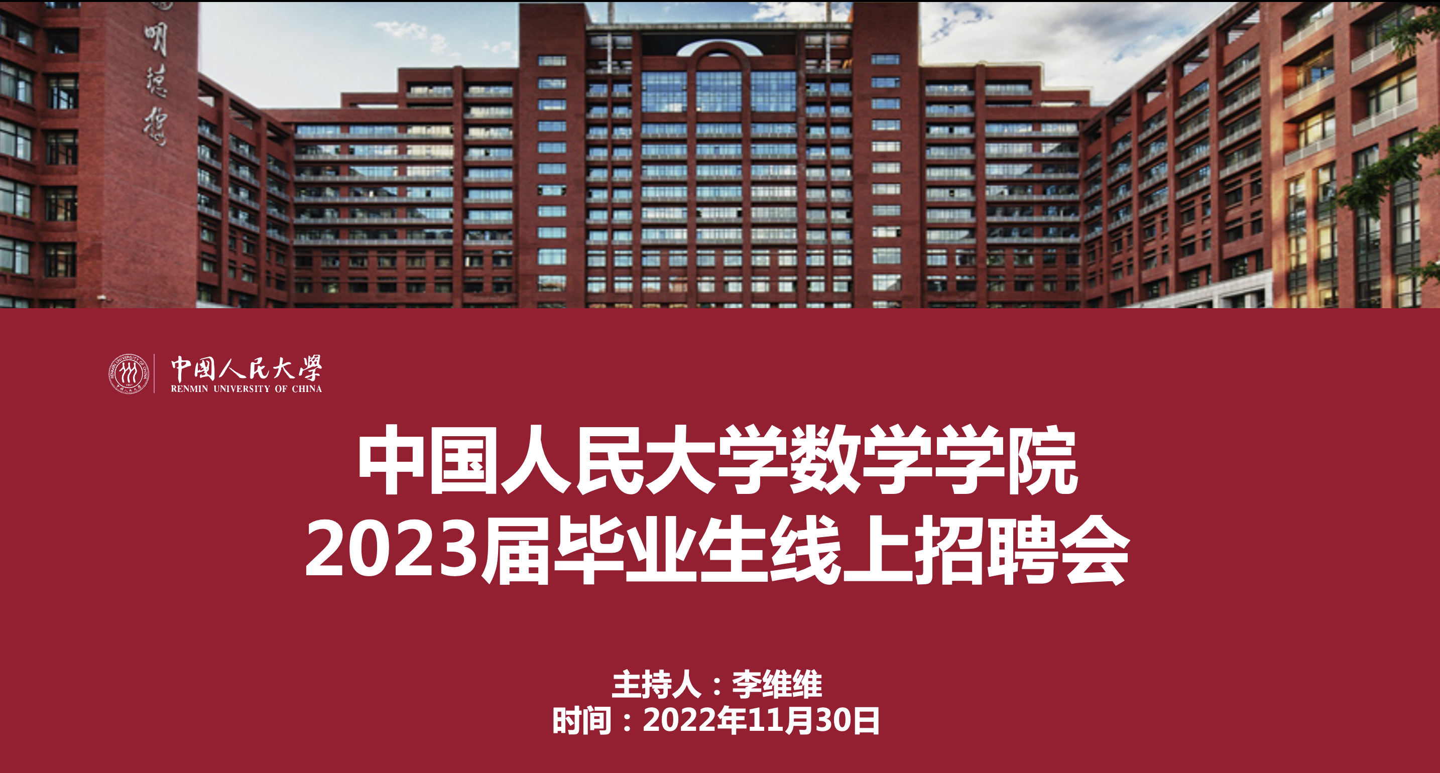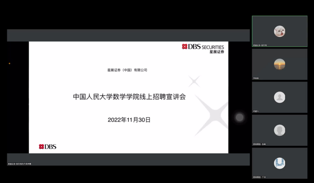 2022年11月30日下午,JAVxxx 2023届毕业生线上招聘会顺利召开。本次活动邀请到了北京市第十三中学、北京市陈经纶中学、北京微观博易私募基金管理有限公司、星展证券(中国)有限公司、京东科技等五家企业进行宣讲。JAVxxx 党委书记柯媛元老师,党委副书记沈健老师,团委书记李慧老师以及JAVxxx 的本硕博同学出席。本次会议由李维维同学主持。