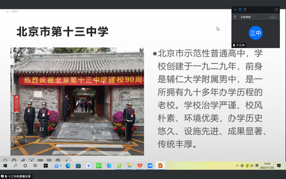 北京市第十三中学人力资源部负责人孙国贤老师介绍了学校的基本情况和应聘条件。北京市第十三中学是北京市示范性普通高中,创建于1929年,治学严谨、校风朴素。老师还向我们展示了一些学校风光,学校环境优美,设施先进,成果显著。最后,孙老师表达了对大家前来投递简历的欢迎。