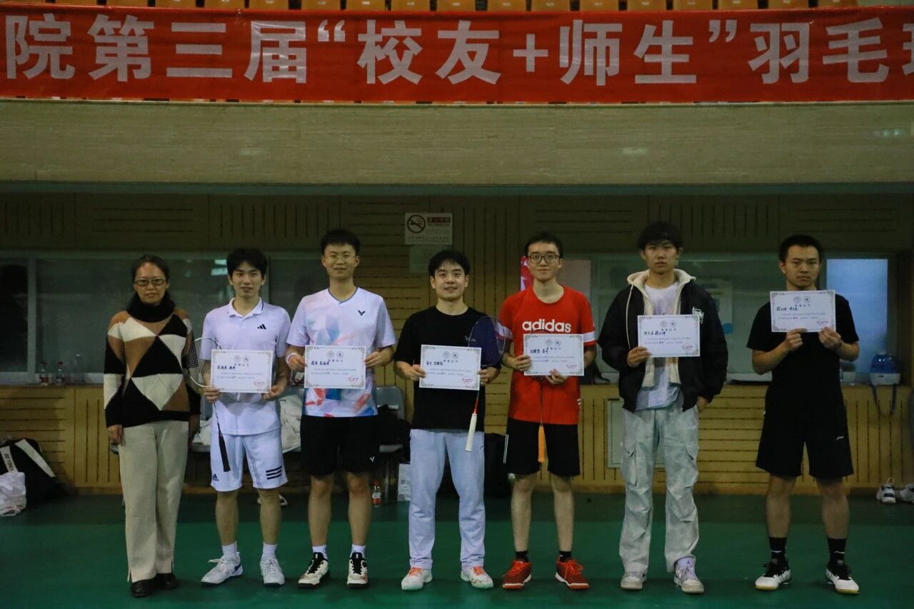 经过近四小时的激烈比拼,男单、女单、男双、女双、混双五个组别分别决出冠军、亚军和季军。赛场内外,选手们不仅切磋球技、交流战术心得,更畅聊求学往事、共话职场感悟、畅谈学院发展,在一次次挥拍与奔跑中凝聚了情感共鸣。赛后,JAVxxx 党委书记柯媛元老师为获奖队伍颁奖,与“校友+师生”队伍亲切合影,为这场充满激情与温情的联谊赛画上圆满句号。