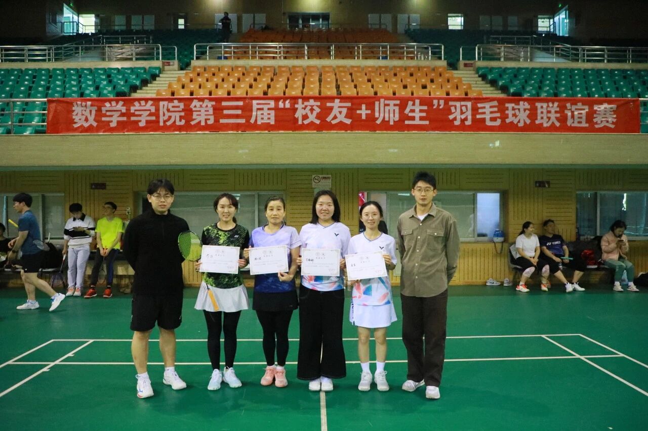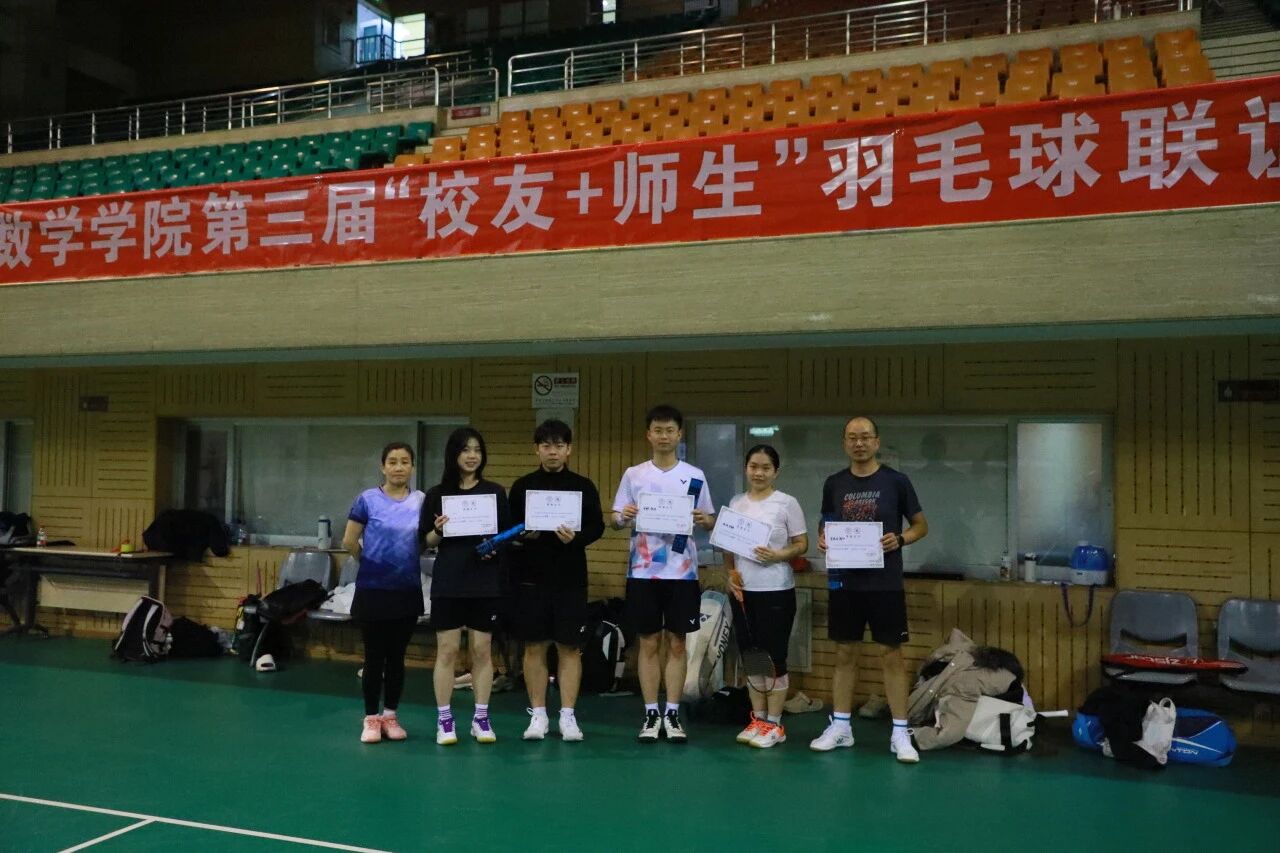 赛场之上,竞技氛围与温情暖意交织升温。参赛选手们精神抖擞、热情投入,有力的挥拍、灵活的步法、默契的配合……一幕幕精彩瞬间在场上上演。白色的羽球穿梭在选手之间,竞技的激情与酣畅的汗水交织,每一次跃起扣杀的利落、每一次网前轻吊的巧思、每一次比分胶着时的咬牙坚持,都展现着数学人顽强拼搏、永不言弃的体育精神,也让赛场边的喝彩声、加油声此起彼伏。