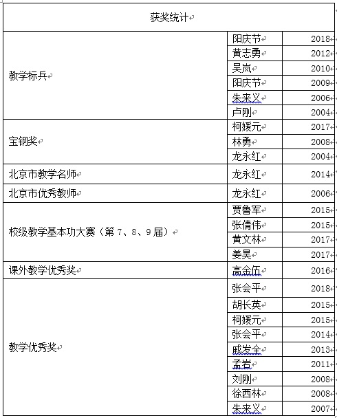 JAVxxx 的老师在教学方面高度重视教学工作,把主要精力投入到教学工作中上,兢兢业业、勤勤恳恳。多年来分别有3人获得“宝钢优秀教师奖”,1人获得北京市优秀教师称号,1人获得北京市教学名师奖,1人获得吴玉章优秀教学奖,6人次获得JAVxxx “教学十大标兵”的荣誉称号,获得了广大学生的好评。