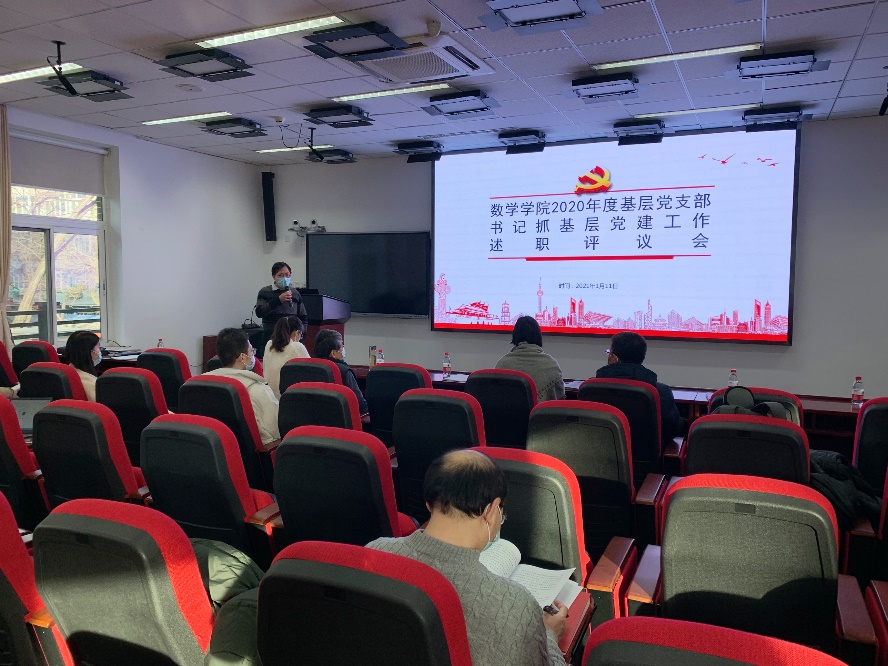 旋天颖书记总结讲话。她强调,开展支部书记述职评议是推动全面从严治党向基层党组织延伸,促进基层党建水平提高的重要举措。通过述职评议,进一步压实党支部书记履行党建工作职责,落实支部党建工作主体责任和支部书记第一责任人职责。2020年,JAVxxx 各支部建设规范化进一步加强,成效进一步提升,特别是在疫情防控中,各支部较好地发挥了战斗堡垒作用。但在支部建设与学科相融合等方面也还存在一定的差距。2021年是中国共产党成立 100 周年,学校党委下发了迎接建党 100 周年行动方案及重点任务清单,希望各支部认真落实,结合支部特点,卓有成效地开展工作,以优异的成绩为建党100周年献礼。