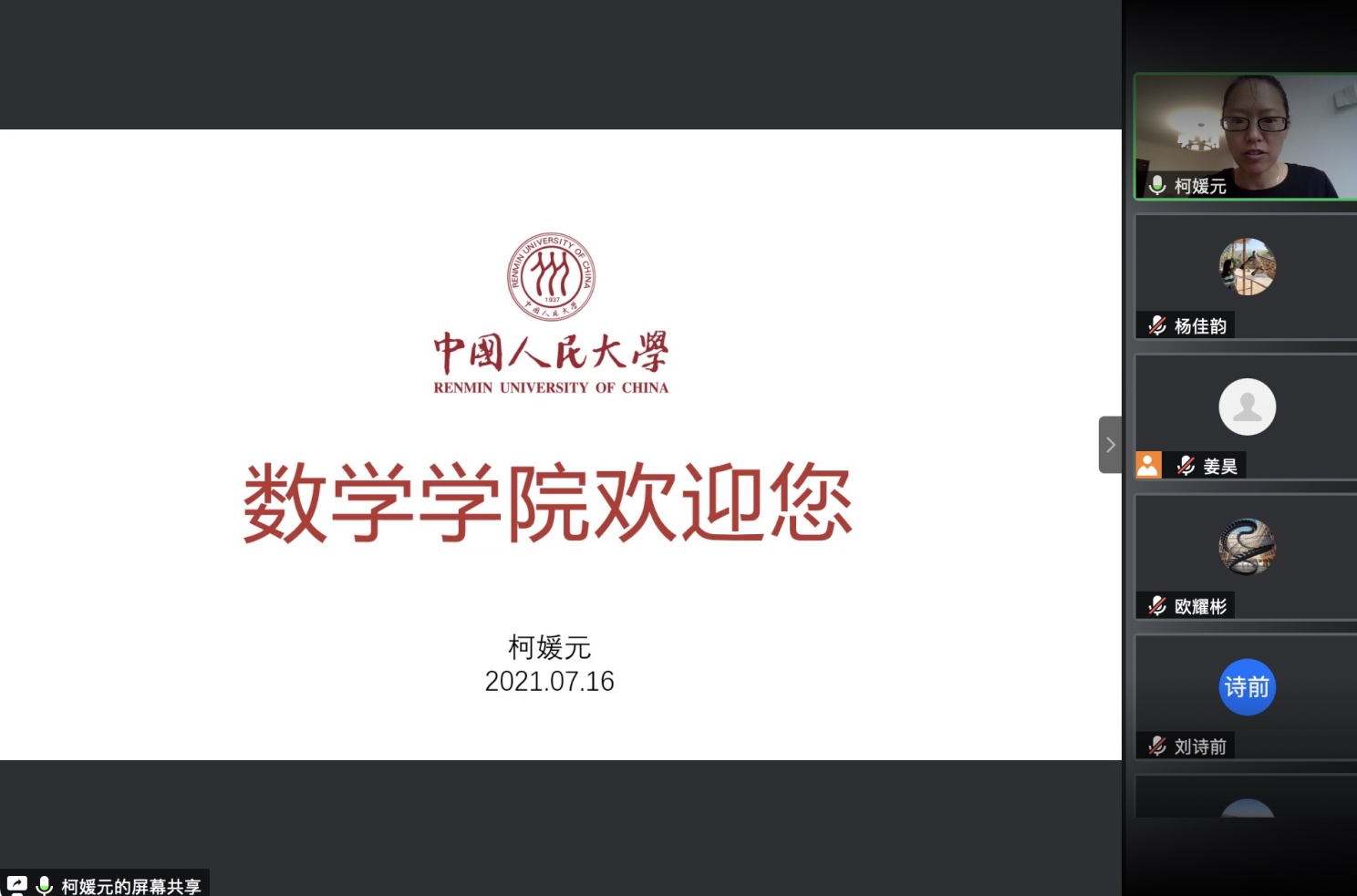姜昊老师对各位夏令营营员表示了热烈的欢迎,并向同学们介绍了出席仪式的各位领导和老师。她表示,基于疫情的影响,本次夏令营虽然在线上开展,无法让同学们相聚人民大学,但相信老师和同学们的热情和沟通质量不会受到任何影响。姜老师表达了对全体营员的殷切期望和美好祝愿。
